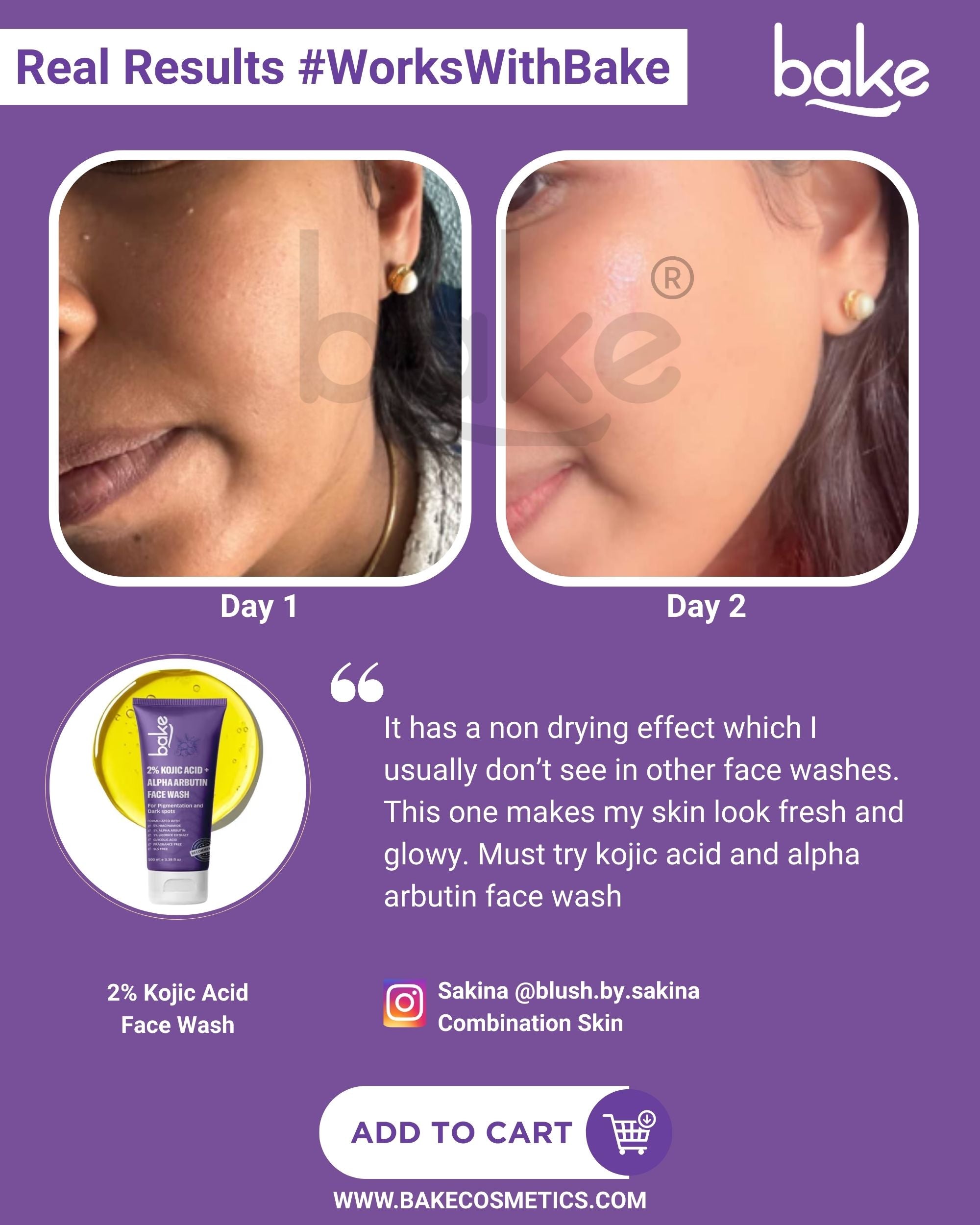 Yes, BAKE’s Kojic face wash is formulated for safe daily use. It contains skin-soothing and moisturizing ingredients like Aloe Vera and Glycerine to prevent dryness or irritation. This makes it perfect for both morning and night use, especially if you're looking for a gentle face wash that effectively targets pigmentation and dull skin.