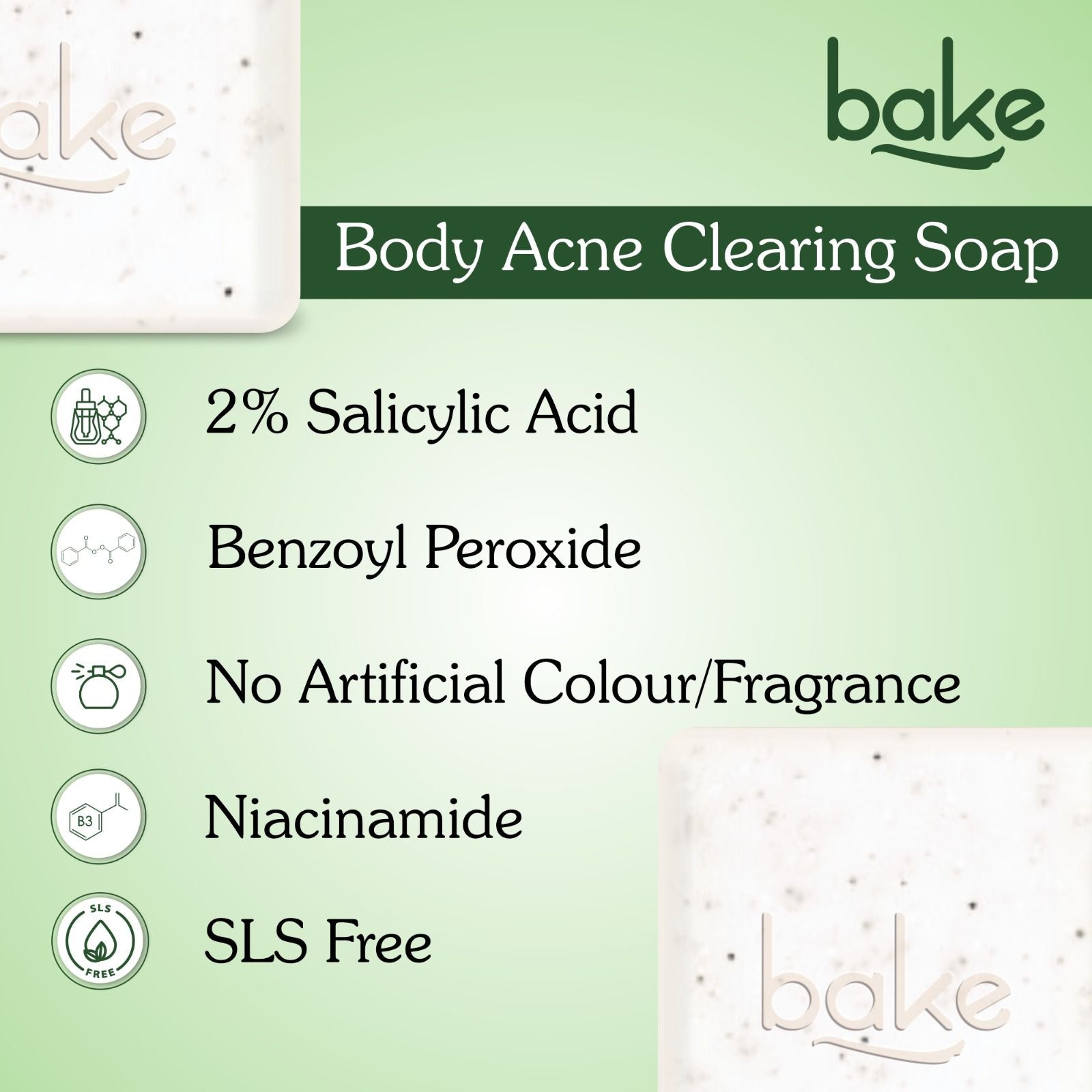BAKE 2% Salicylic Acid Soap is a dermatologist-formulated body-cleansing bar