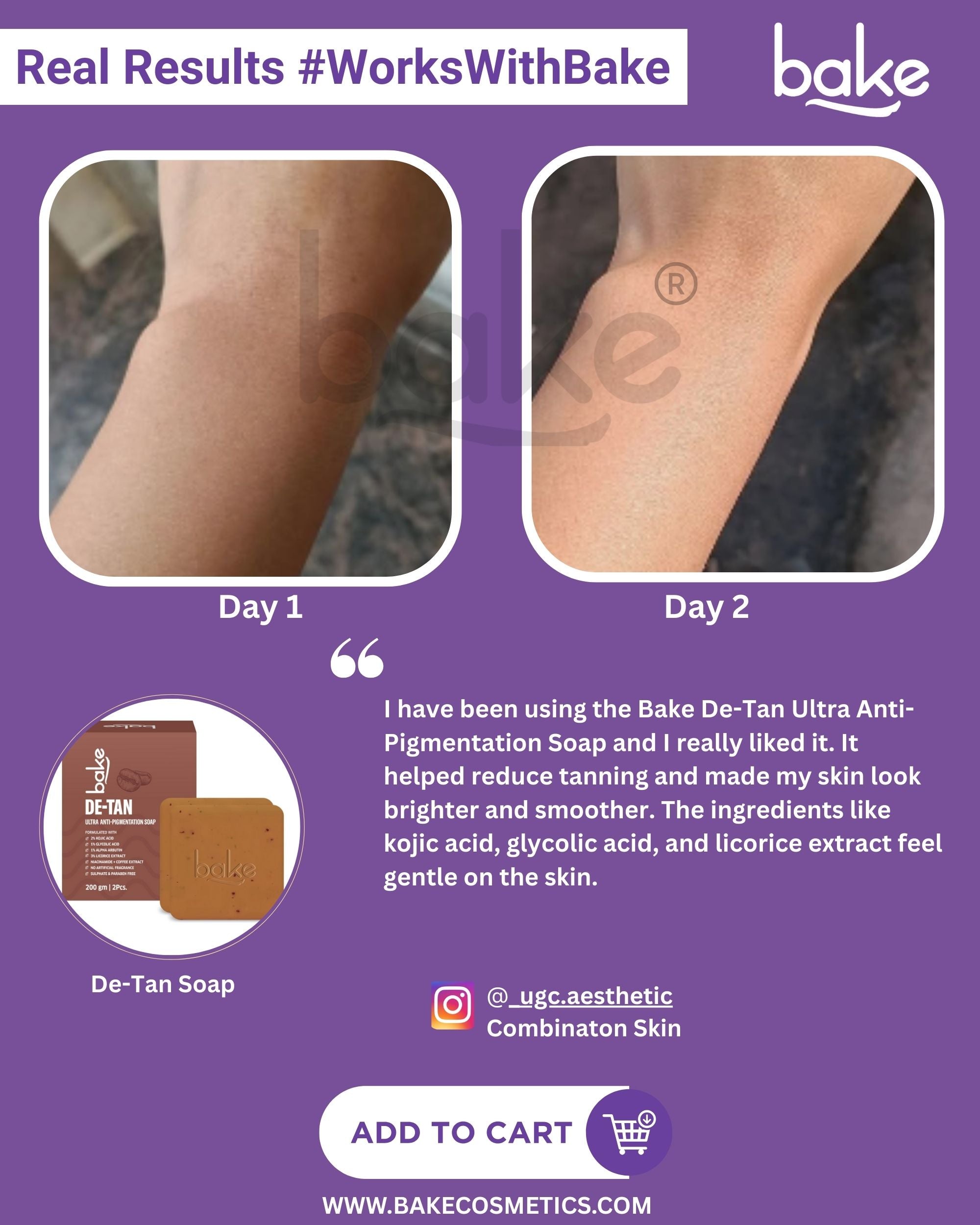 Reveal brighter, smoother skin with BAKE De-Tan Scrub Treatment Coffee Soap, a powerhouse blend of exfoliating and de-pigmenting actives. Infused with 2% Kojic Acid, 1% Glycolic Acid, and 1% Alpha Arbutin, this ultra-pigmentation soap helps fade tan, lighten dark spots, and visibly reduce pigmentation. The coffee-based scrub formula gently exfoliates dead skin, unclogs pores, and enhances skin texture without over-drying. Glycolic Acid boosts cell turnover, while Kojic Acid and Alpha Arbutin work together to even out skin tone and diminish discoloration. Perfect for daily use, it offers a deep yet gentle cleanse, making your skin feel soft, refreshed, and revitalized. Suitable for all skin types and safe for both men and women. Use it regularly on face and body to restore your skin’s natural glow and smoothness. Comes in a value pack of 2 soaps (100g each) for long-lasting use.