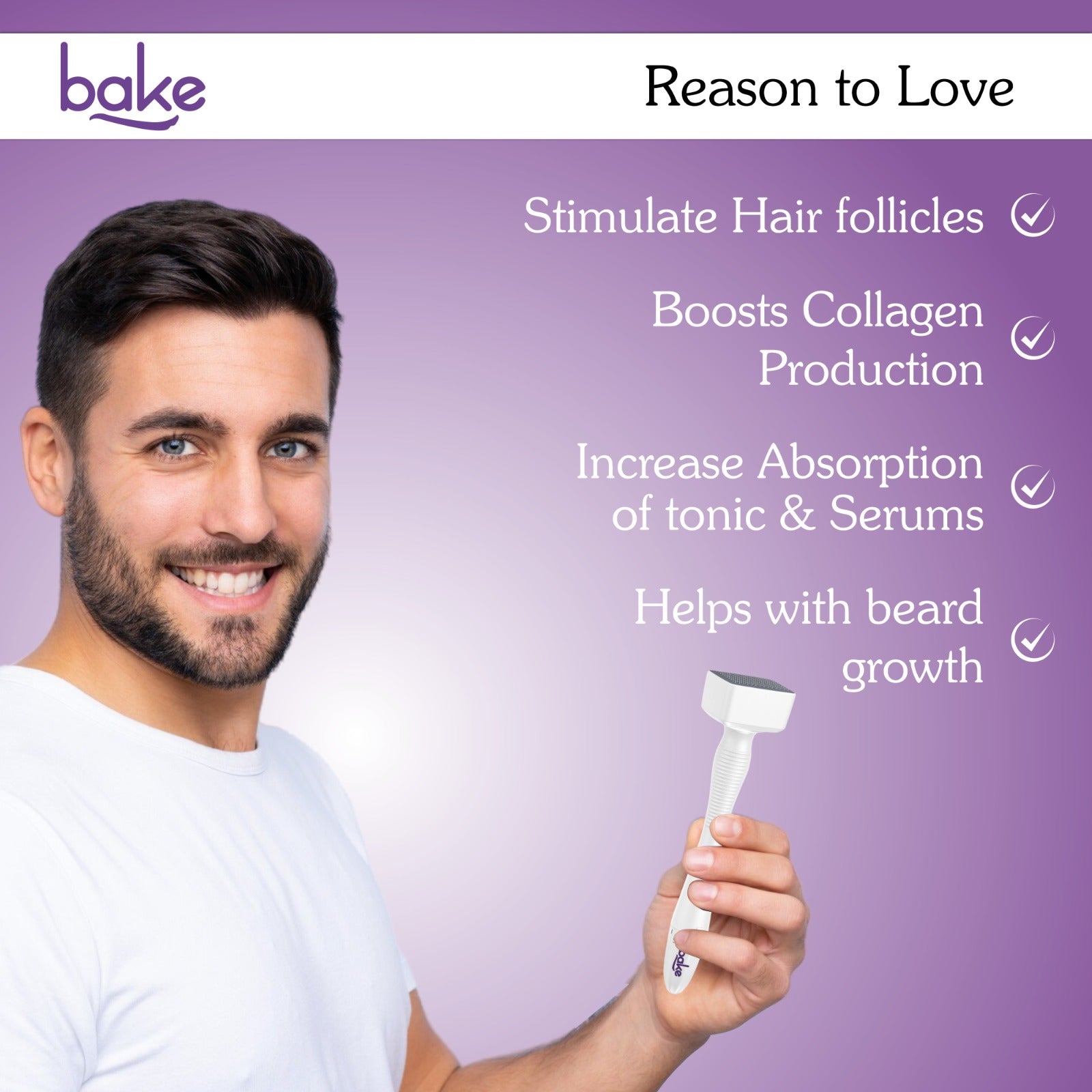 BAKE Derma Stamp stimulates hair and beard growth by creating micro-injuries on the skin's surface, which boosts blood circulation and triggers the body's natural healing response, leading to the activation of hair follicles and promoting new hair growth.