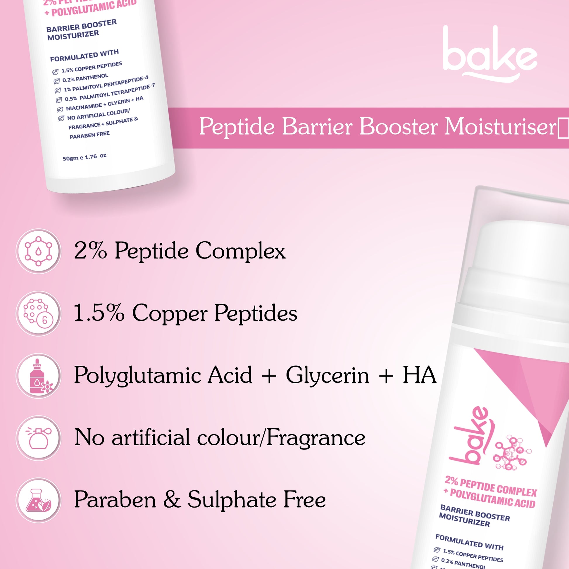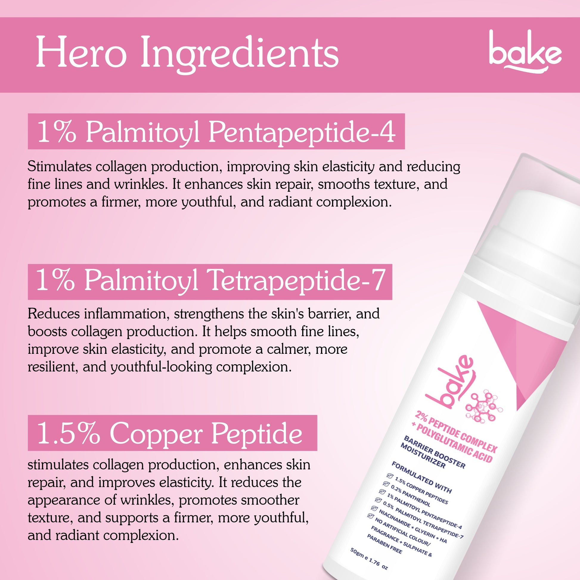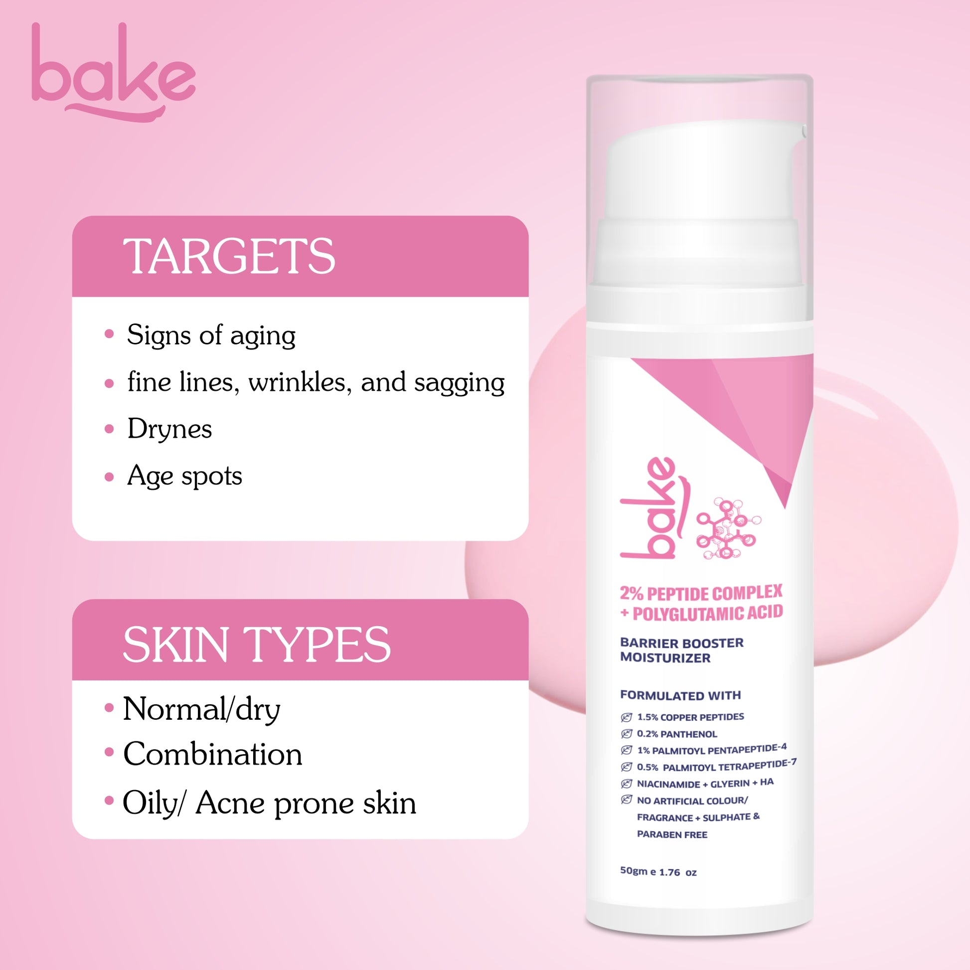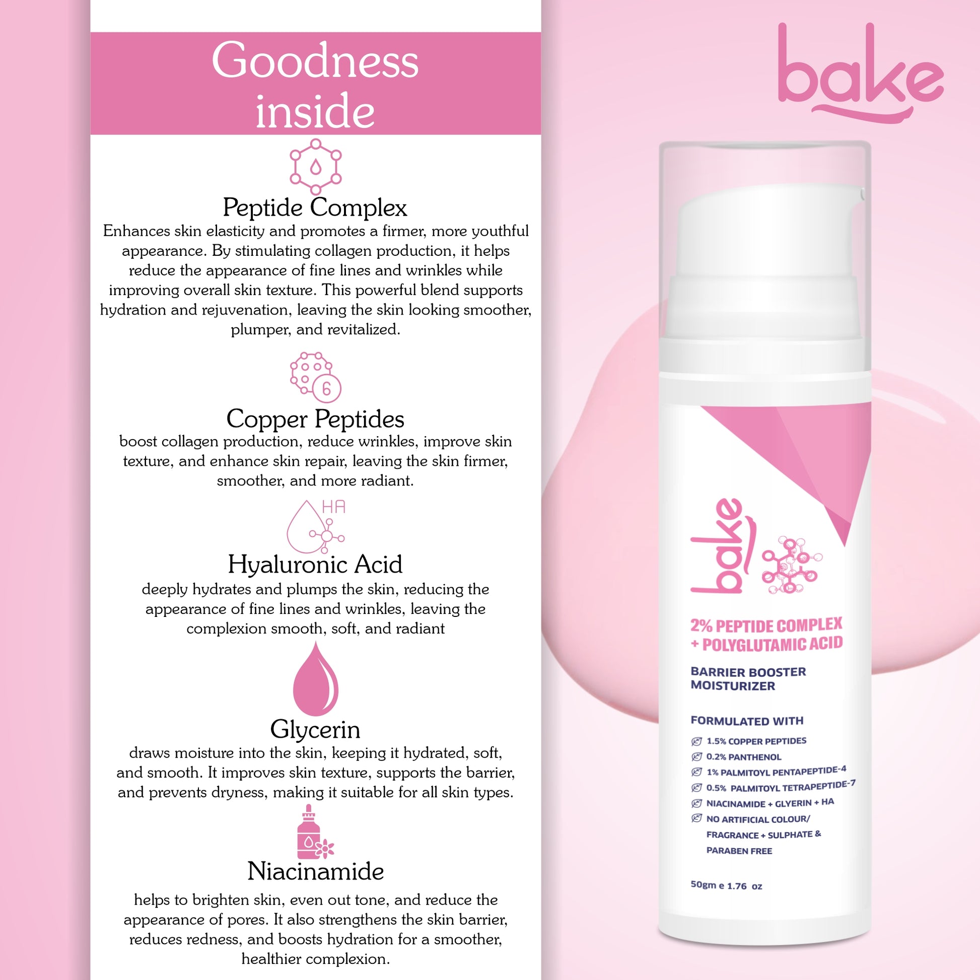 Your skin deserves the best, so give it the gift of glow with BAKE's Super Glow+ Glazed Peptide Barrier Repair Moisturizer. For skin that's glazed to perfection, look no further than BAKE's Super Glow+. Your skin's thirst will finally be quenched and its true glow unleashed. Treat your skin to this peptide-powered potion and get your glow on!
